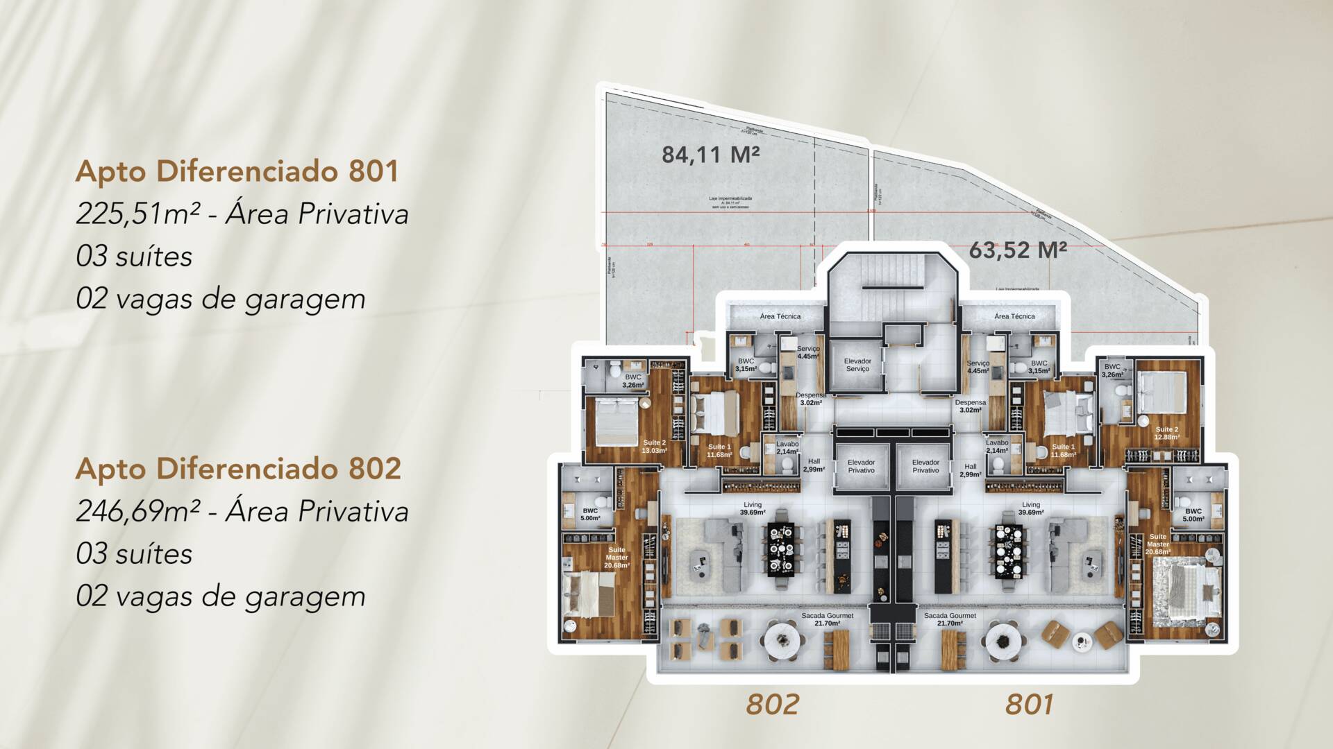 APARTAMENTOS DIFERENCIADO TIPO 801 – ÁREA PRIVATIVA – 225,510 M²