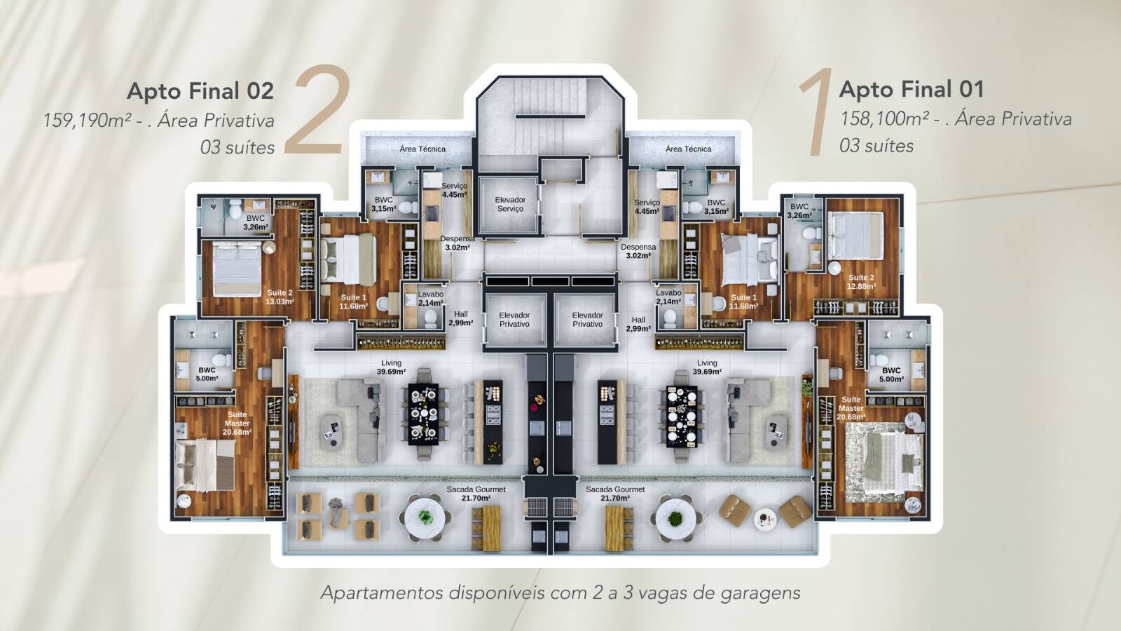 APARTAMENTOS TIPO 1 – ÁREA PRIVATIVA – 158,100 M²