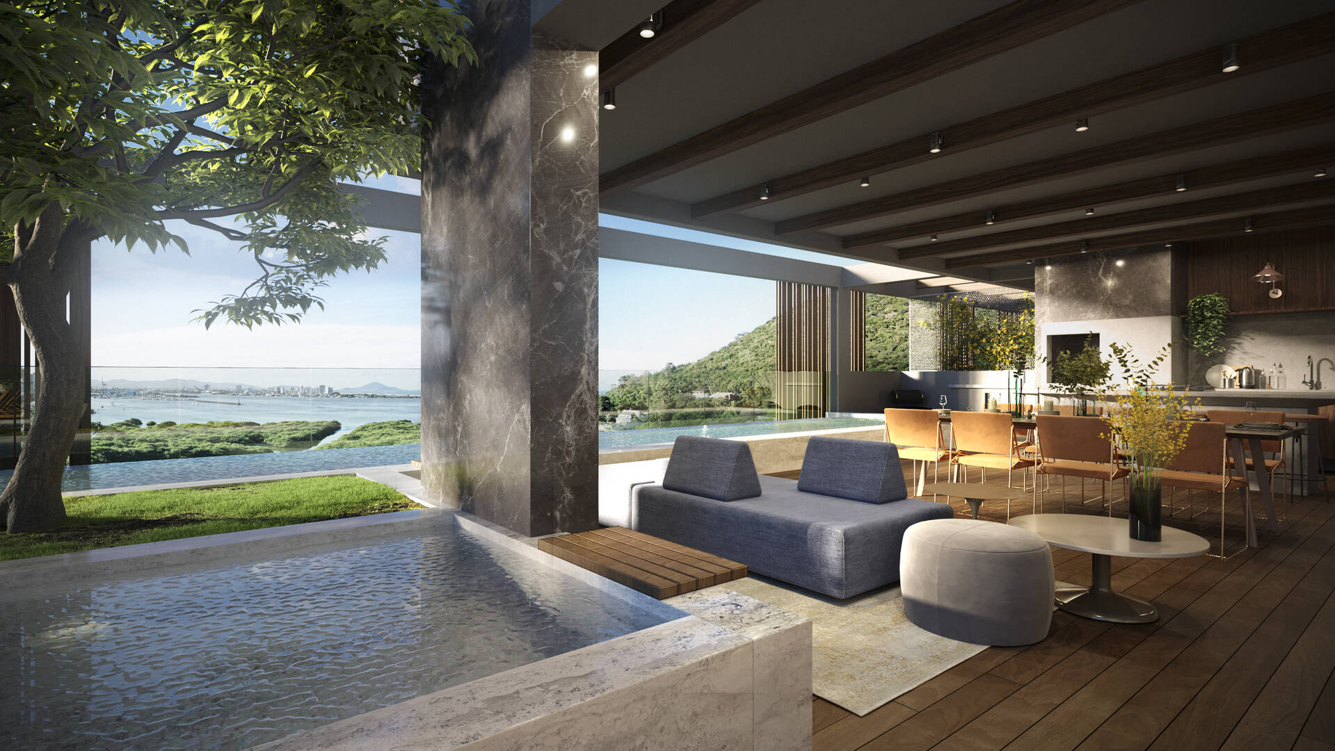 - Piscina com borda infinita aquecida